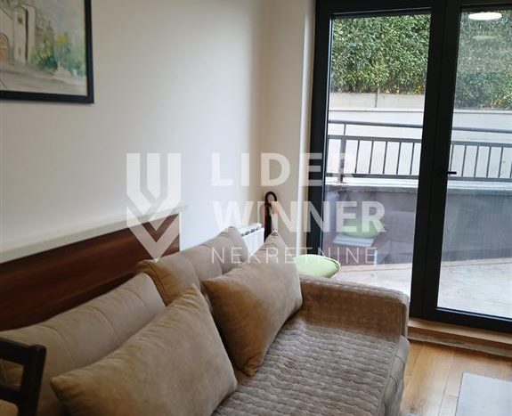 U prilici smo da vam ponudimo izvrstan stan. Po strukturi 1.5, 35m2, 15m2 terase koju koristi samo ovaj stan. Nalazi se u prizemlju, grada od 5 spratova, južno orijentisan. Stan se sastoji od hodnika, dnevnog boravka sa kuhinjom, izlazom na terasu, kupatila, spavaće sobe sa izlazom na terasu.