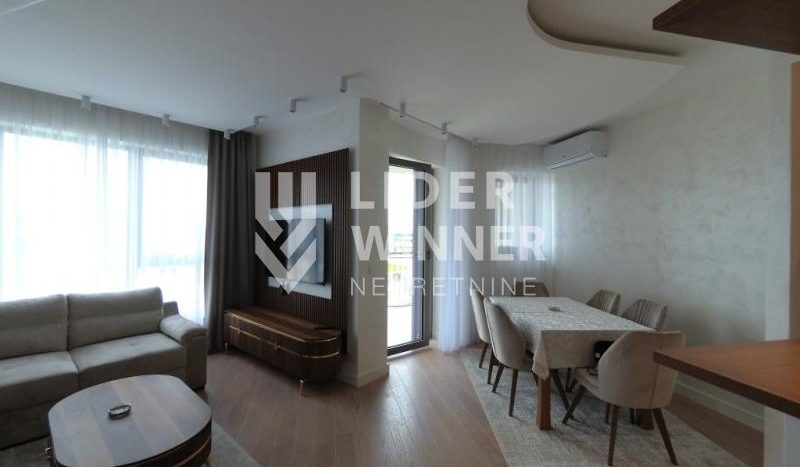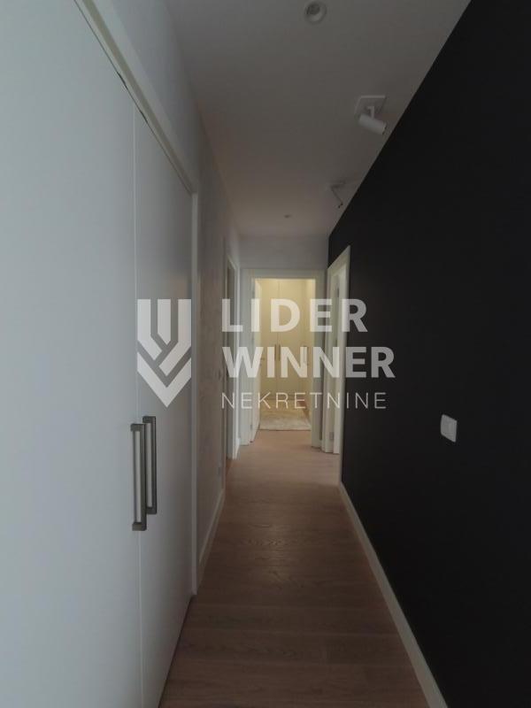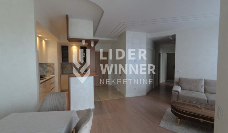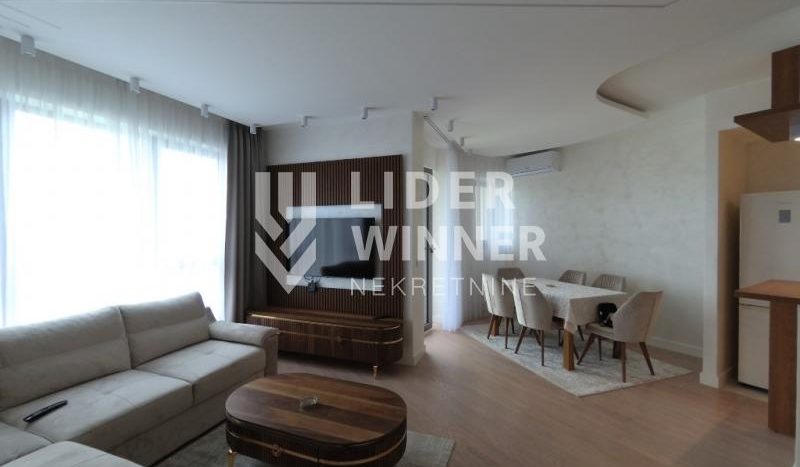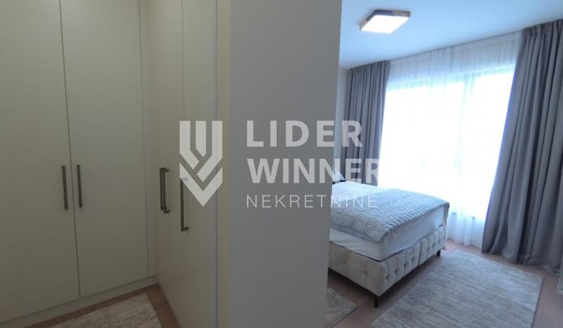 We rent a beautiful luxuriosly furnished apartment near the bank of the Sava, parks, restaurants, the largest shopping centar Gallery,promenade… The apartment is equipped with special care with the help of an architect where it was taken into account the selection of furniture and materials. Extremely pleasant, bright and calm. It consists of an entrance hall, kitchen, dinning room, living room, teracce with a beautiful view, a hallway separating the second room, the first bathroom, a master room with its own bathroom. It has specious wardrobes throughout the area. Heating is on a calorimetar and SBB for the next two years free of charge. It is rented with a garage space. agencijska provizija 50%