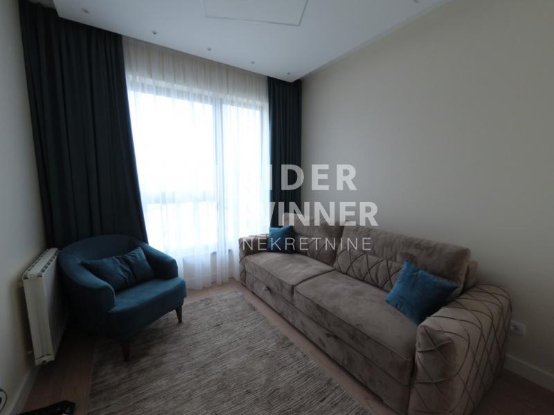 Izdajemo prelep, luksuzno opremljen stan u neposrednoj blizini obale Save, parkova, restorana, najvećeg TC Galerija, šetališta… Stan je opremljen posebnom pažnjom uz pomoć arhitekte gde se vodilo računa o odabiru nameštaja i materijala. Izuzetno prijatan,svetao i miran. Čine ga predsoblje, kuhinja, trpezarija, dnevna soba, terasa sa lepim pogledom, hodnik koji razdvaja sobu, prvo kupatilo, drugu master sobu sa sopstvenim kupatilom. Poseduje prostrane garderobere kroz ceo prostor. Grejanje je na kalorimetar a SBB sledeće 2 godine gratis. Izdaje se sa garažnim mestom.