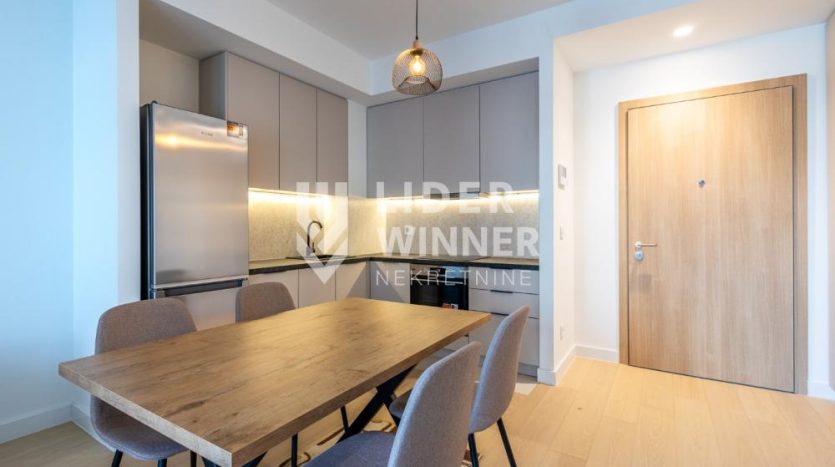 Lux dvosoban stan, u Beogradu na vodi, u zgradi BW King’s Park Residence. Stan se nalazi na 5 spratu, sastoji se od ulaznog hodnika, prostrane dnevne sobe koja izlazi na terasu, pogled ka reci, kuhinje sa trpezarijom, spavaće sobe, kupatila i vešernice.