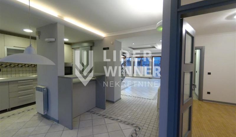Retko u ponudi. Izuzetan 6.0, lux, duplex, u novijoj zgradi na prestižnoj lokaciji. Uknjižen na 167m2 a poseduje i više terasa čija je ukupna površina 22m2. Zgrada je sa centralnim grejanjem, liftom i video nadzorom. Na donjem nivou su prostrani dnevni boravak sa izlaskom na jednu terasu, kuhinja sa ugradnim elementima i belom tehnikom, trpezaija, ostava, jedna spavaća soba sa garderoberom i kupatilo. Na gornjem nivou se nalaze tri spavaće sobe od kojih jedna poseduje sopstveno kupatilo a druge dve imaju zajedničko, terasa, lođa a takođe i sauna sa dve tuš kabine. Stan se prodaje sa garažom koja ulazi u cenu stana. Alarmni sistem-Paradox. Izuzetno je svetao i dvostrano orijentisan.