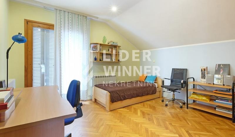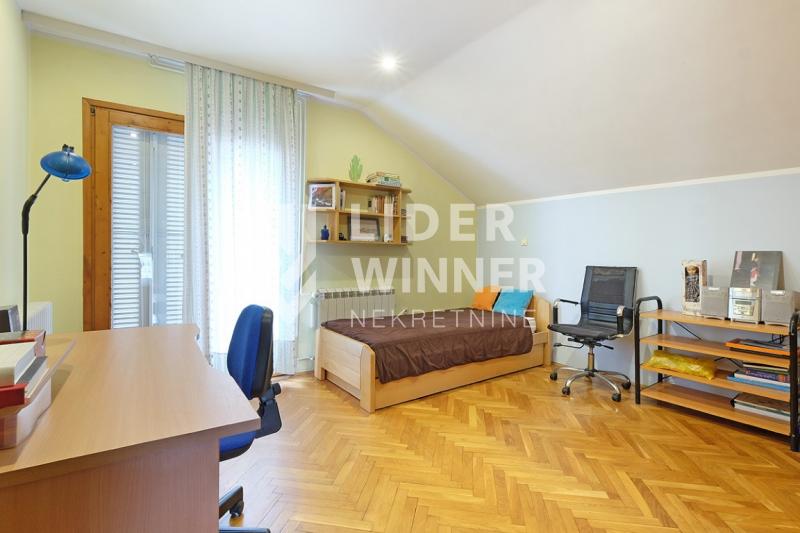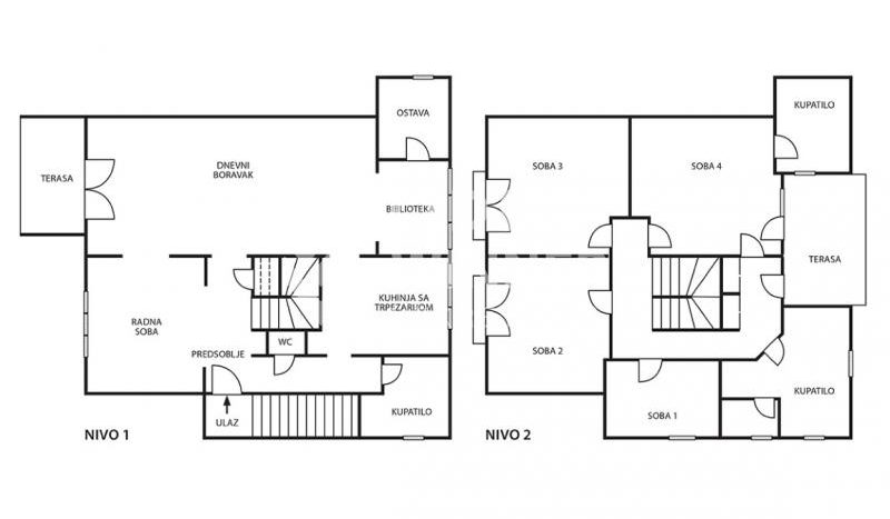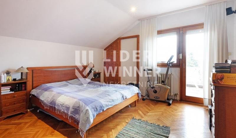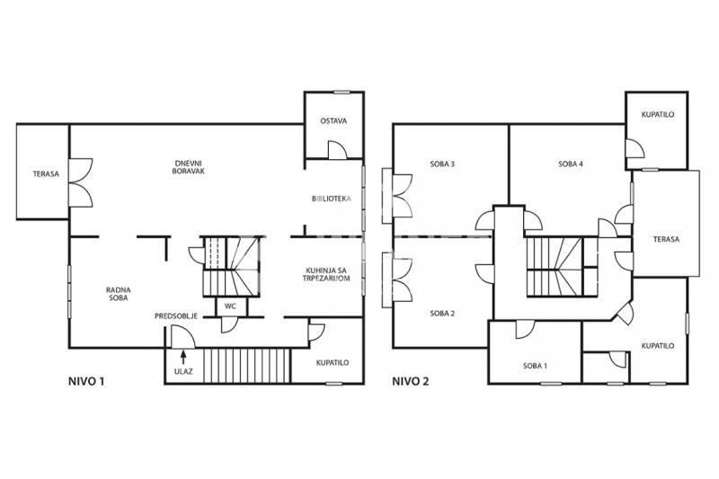 Drugi nivo čine: master soba sa sopstvenim kupatilom, prostrana terasa koja gleda na baštu, drugo kupatilo, dva balkona plus tri sobe.