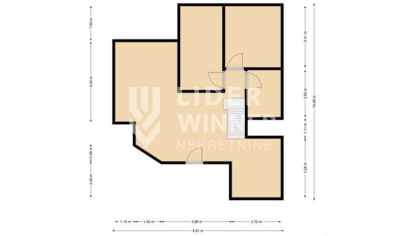 prostorije: I nivo – dnevna soba sa trpezarijom, kuhinja, dve spavaće sobe, kupatilo, lodja.