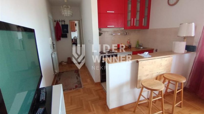 Prostorije: predsoblje, kupatilo, dnevna soba sa trpezarijom i kuhinjom, velika zastakljena terasa.