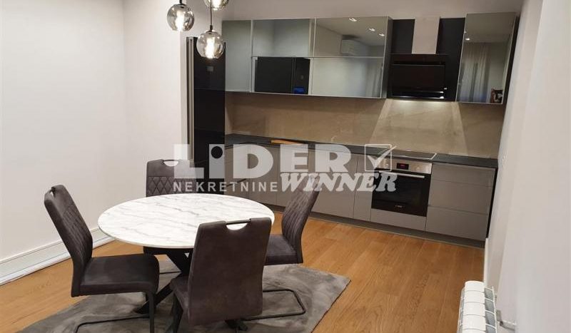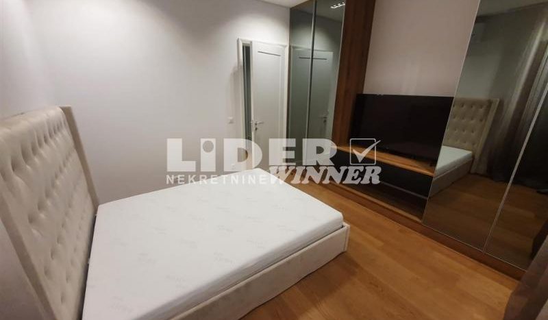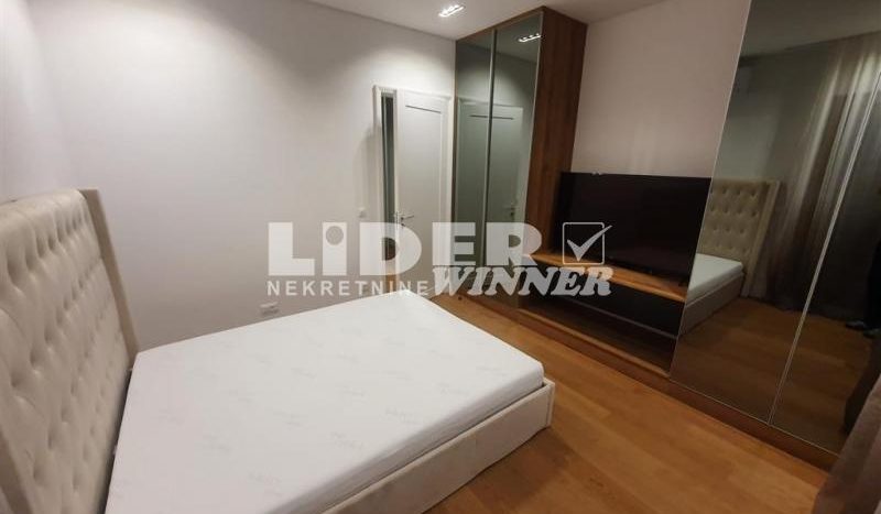 Stan se sastoji iz dve spavaće sobe od kojih je jedna ,,master bedroom“sa sopstvenim kupatilom,kuhinje,trpezarije ,dnevnog boravka koji izlazi na lepu terasu ,dva kupatila.Visina plafona3m.Potpuno nov nikad useljivan.