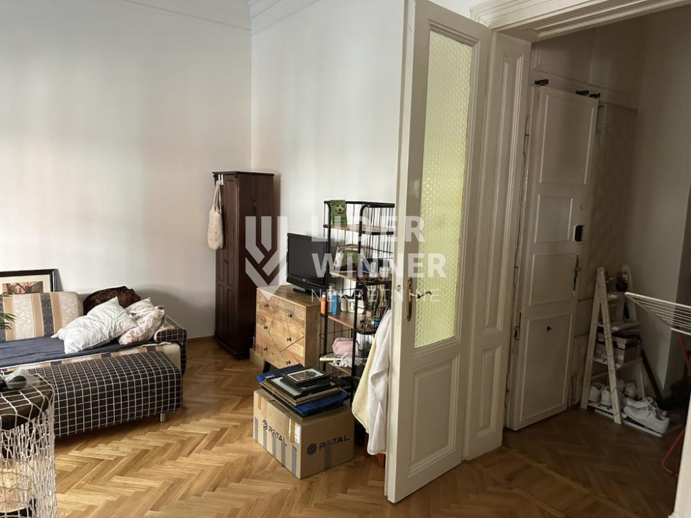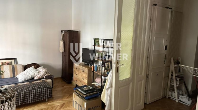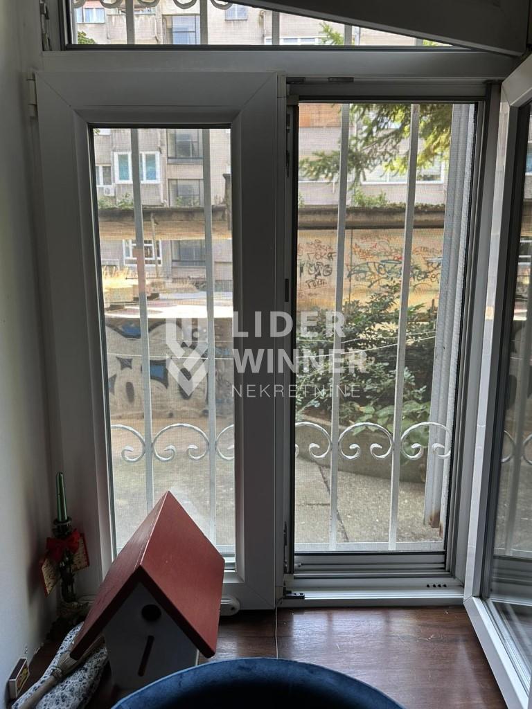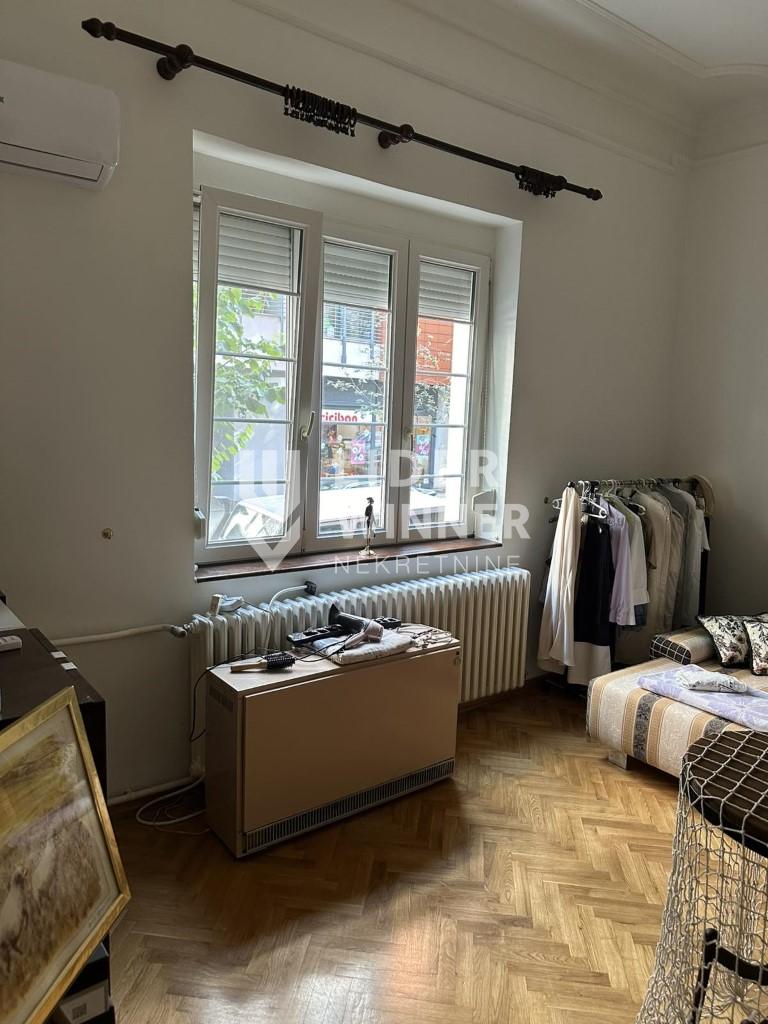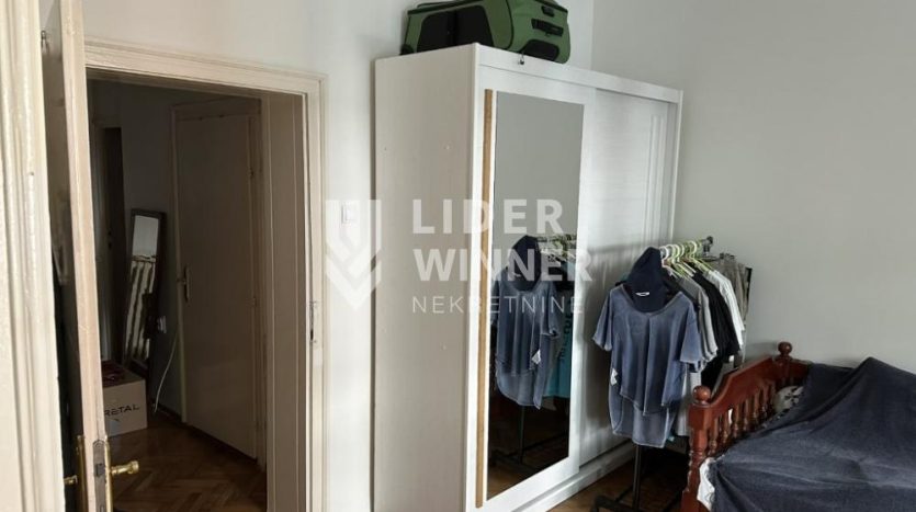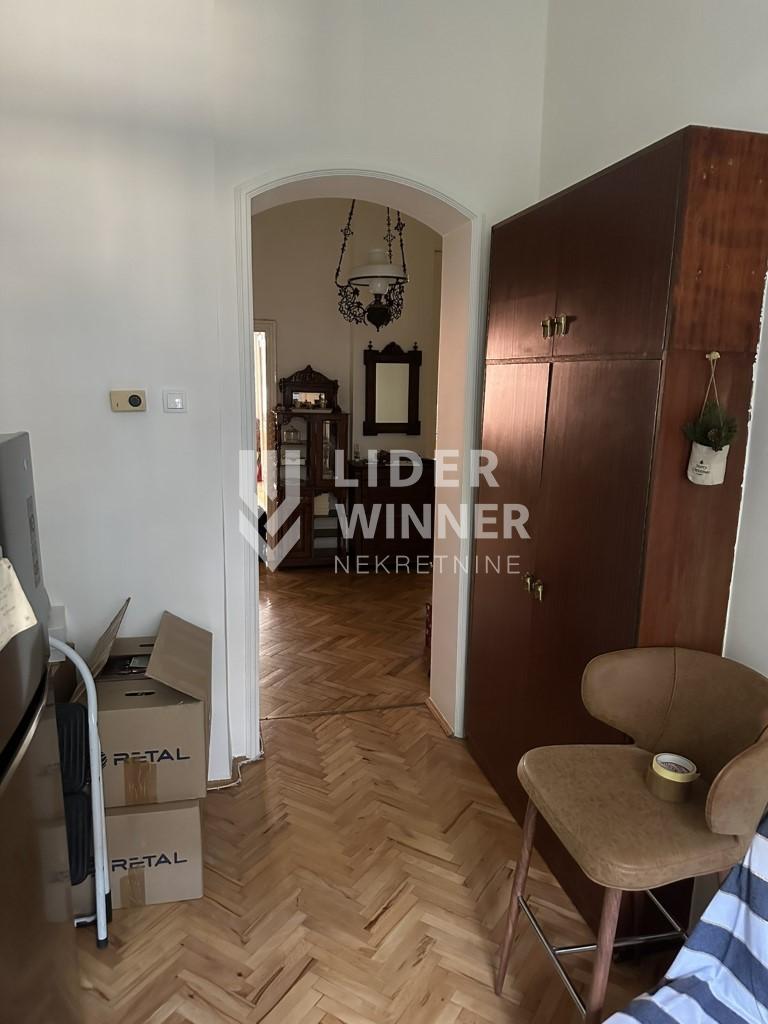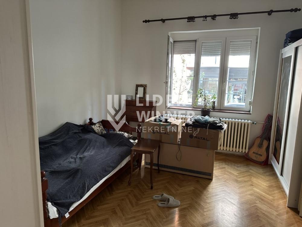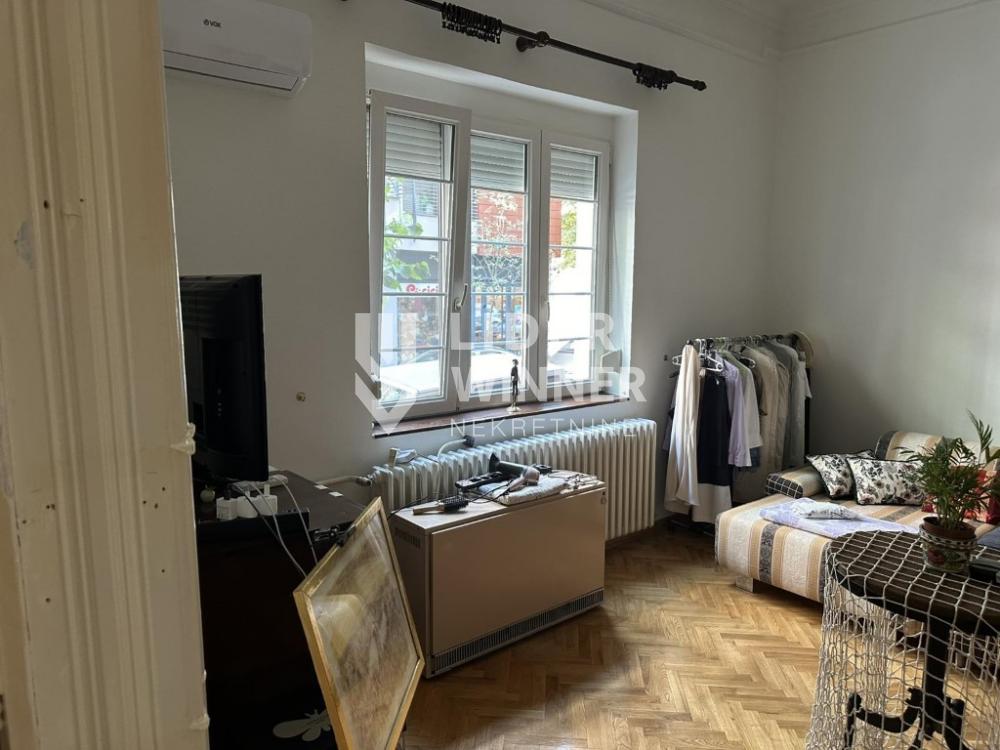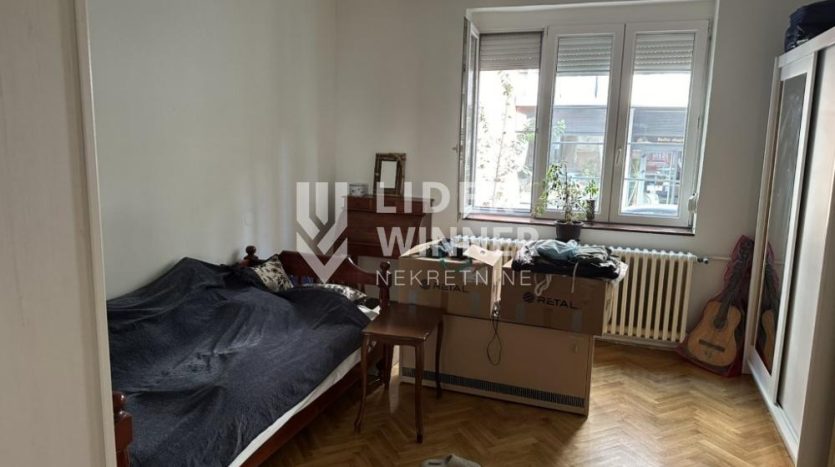 Antre – salon iz koga se ulazi u sve prostorije: kupatilo, toalet i trpezarija iz koje se ulazi u kuhinju, dve velike sobe koje gledaju ka ulici, . Vlasnici jedini imaju pristup dvorištu od 20m2. Stan je jednostrano orijentisan I-Z, visina plafona je 3,55m, sa spuštenim plafonima. RENOVIRAN, spoljašnja stolarija je PVC, a unutrašnja stolarija je originalna i očuvana, parket je očuvan klasični, grejanje je TA (ima kotao za etažno grejanje na struju i sprovedene radijatore), klimu, interfon, video nadzor, kablovsku, podrum.