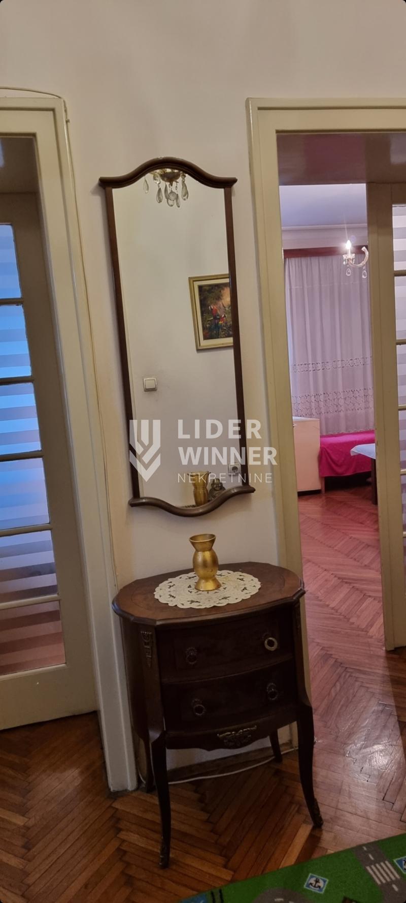 Izvandredan salonac u urednoj zgradi sa mermernim ulazom, uknjižen na 121m2, mereno 130m2, sa dva ulaza, dvostran, iz 1939godine. Funkcioniše kao dva zasebna stana. Postoji i pripadajući podrum. Manja jedinica ima 30m2, a veća 100m2
