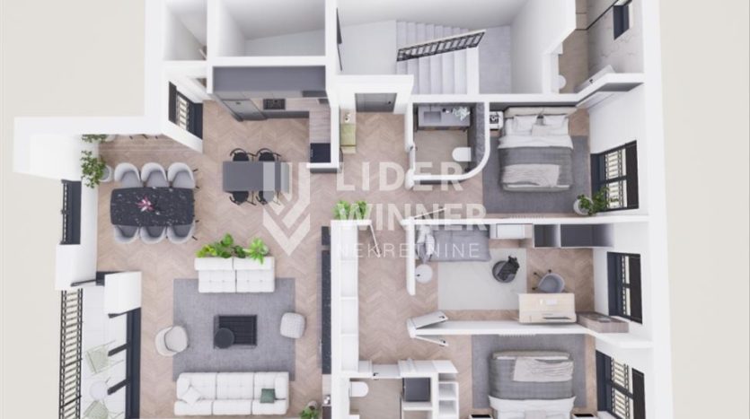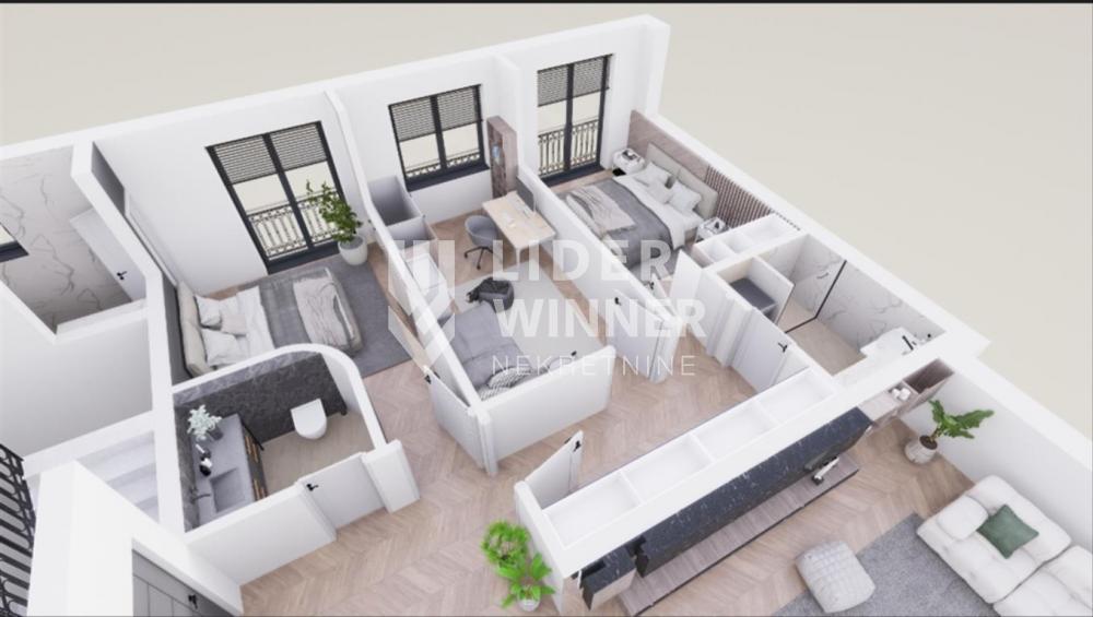 Prodaje se lux 4,0 stan u izgradnji sa garaznim mestom na prvom spratu na mirnoj lokaciji kod Specijalnog suda.
