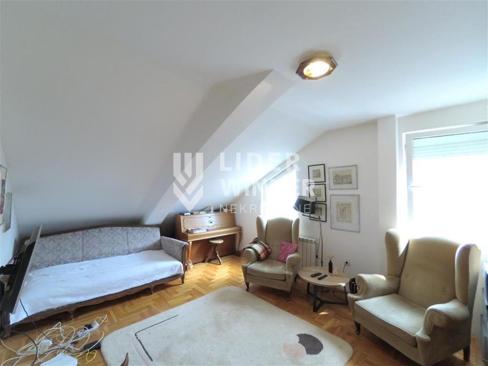 Komforan stan u kompaktnoj zgradi na trećem spratu bez lifta sa kosinama. Iznad stana je potkrovni deo sa odličnom izolacijom. Visina plafona od 2.9m do 93cm zbog nagiba krova. PVC stolarija sa roletnama , parket, stan je očuvan.