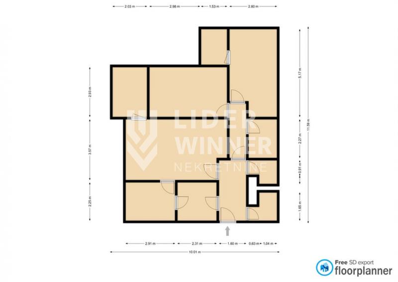 hodnik, kuhinja sa trpezarijom, dnevna soba, lođa, wc degažman, dve spavaće sobe, kupatilo, lodja 2. agencijska provizija 2%