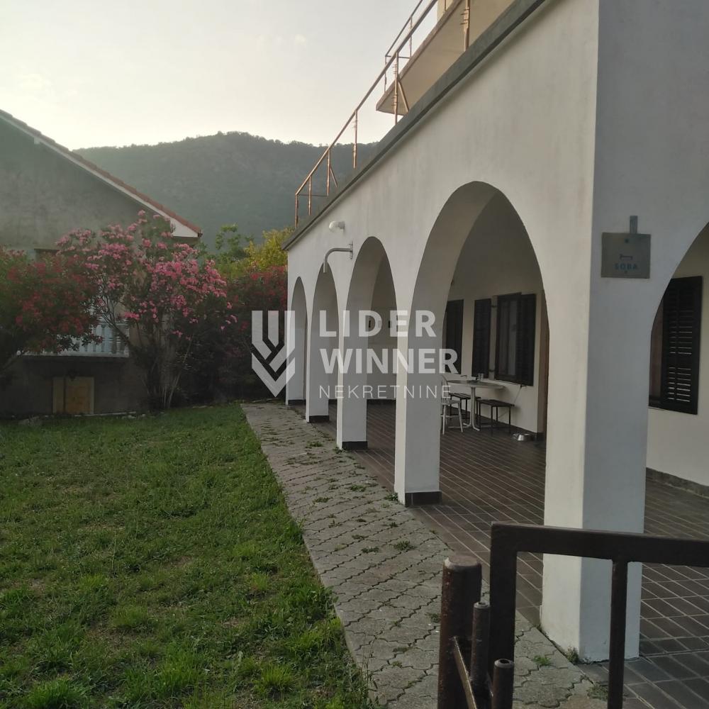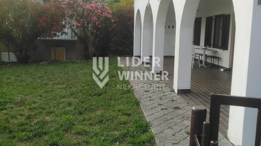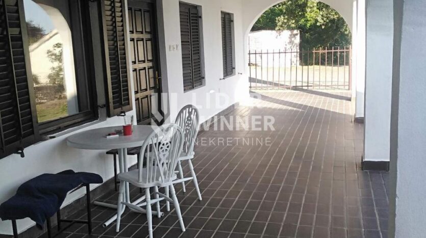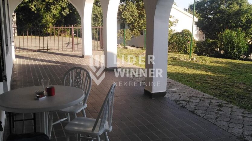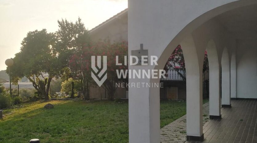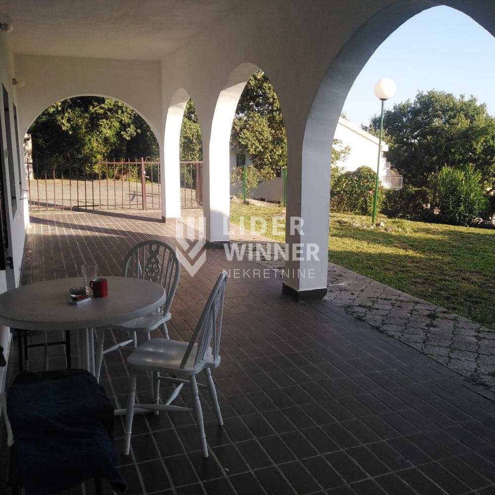 Ispred kuće je veliki travnjak a iza velika terasa i vinograd.