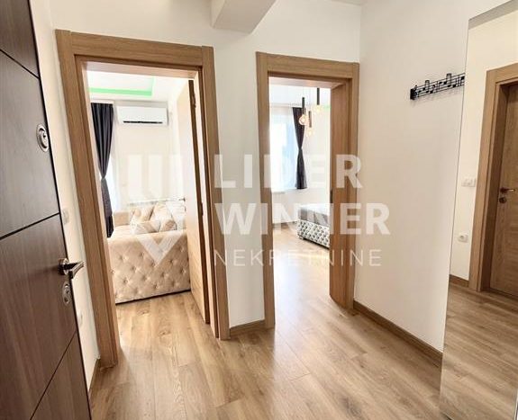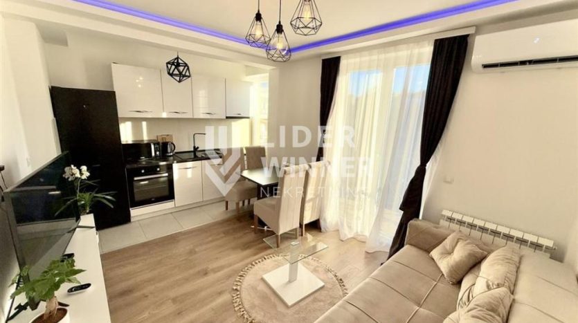 Prostorije: hodnik (predsoblje), dnevna soba sa kuhinjom i trpezarijom, kupatilo, spavaca soba i terasa sa pogledom na dvoriste i park (4m2).