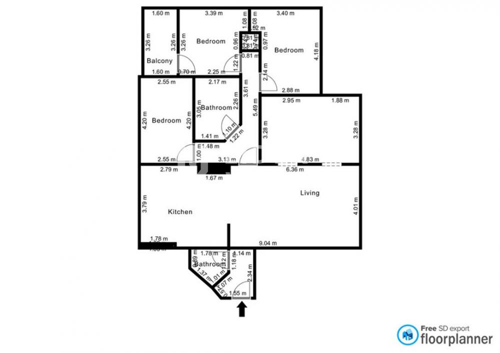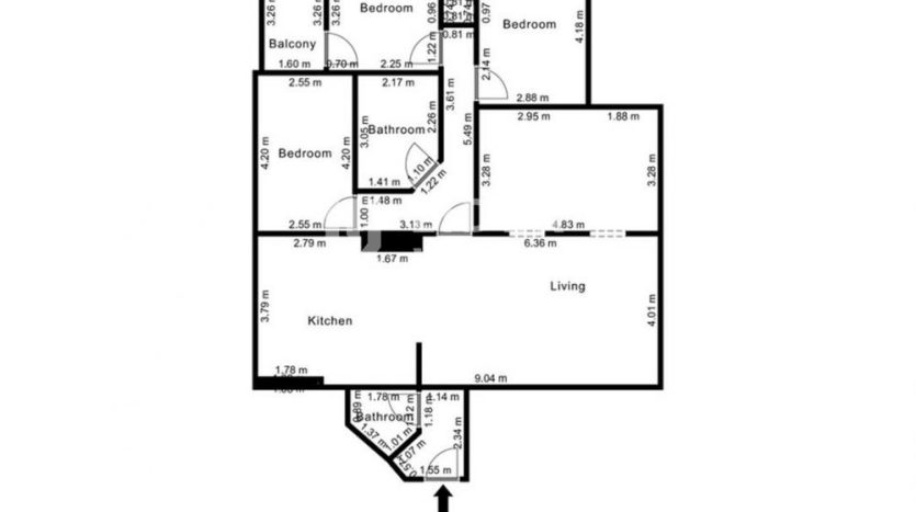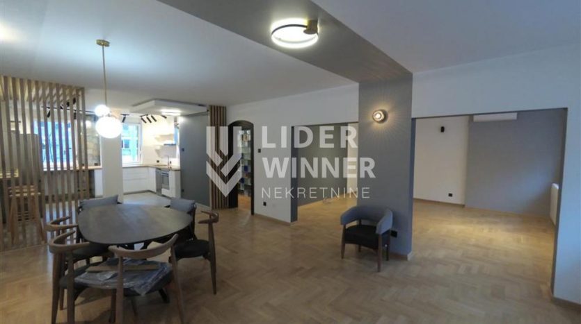Sastoji se od dnevnog boravka sa trpezarijom i kuhinjom, 3 spavaće sobe i 2 kupatila.