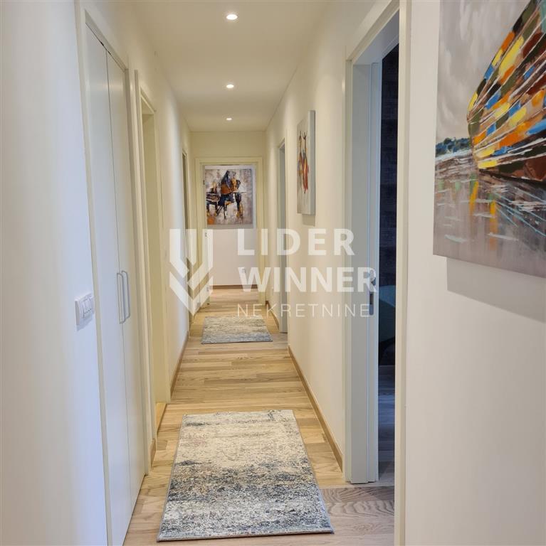Ultra lux stan u zgradi iz 2022 sa obezbeđenjem FTO, privatnom garažom, sa otvorenim pogledom ka zelenilu. Stan je svetao, dvostrano orijentisan, a dolazi se sa 3 lifta. Sve je do detalja osmišljeno , pa je i način odlaganja kućnog otpada u skladu sa najsavremenijom tehnologijom. Poseduje klime, 4 mč, 3 terase. Odvojen spavaći blok, sav ugradni nameštaj i bela tehnika ostaje. Prostorije; predsoblje, kuhinja, dnevno-trpezarijski boravak, 4 mč (vešeraj, toalet, 2 kupatila), hodnik, 3 spavaće sobe, 2 terase. Plus 2 garažna mesta 50.000e. agencijska provizija 2%
