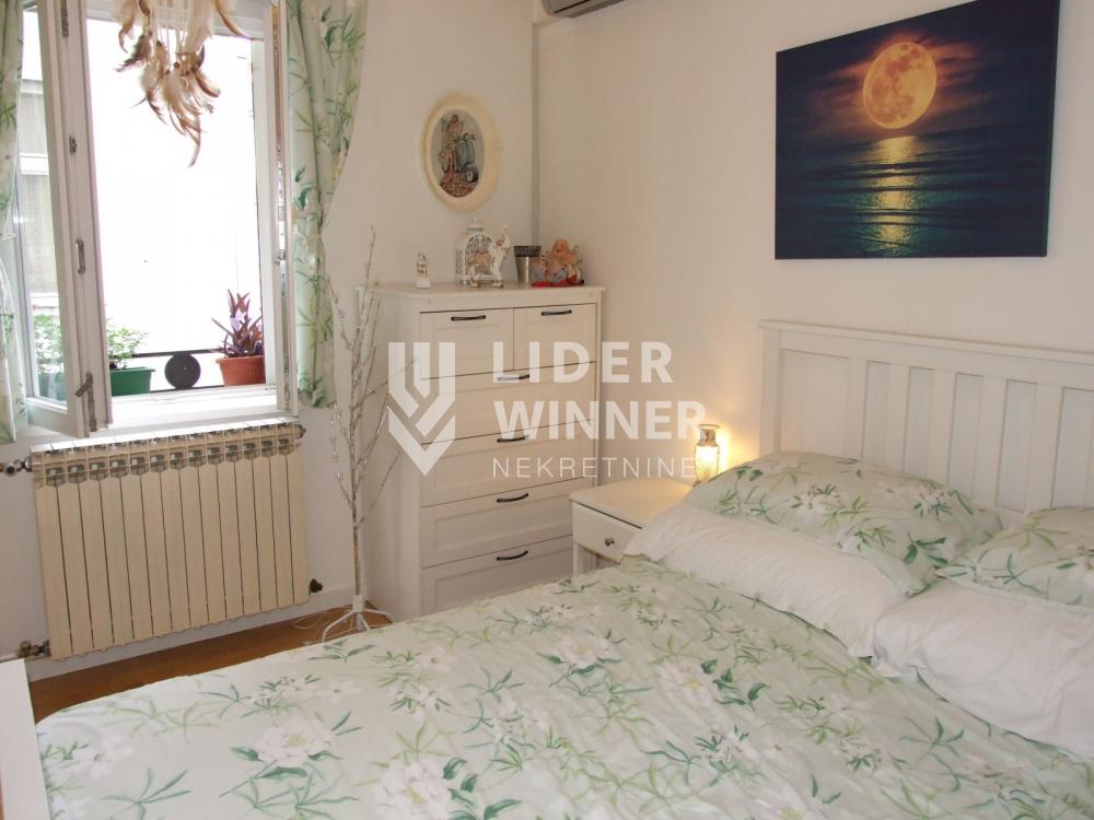 Lux salonac u Molerovoj, izmedju Krunske i Njegoševe. Nalazi se na I spratu odlične predratne zgrade. Zgrada je dvorišna, uvučena od ulice i buke. Uknjiženo je 71m2, a mereno 74m2. Stan se sastoji od velikog predsoblja, dnevne sobe, dve spavaće sobe, kuhinja, kupatilo, terase, podrum 9m2, i parking mesto u dvorištu.