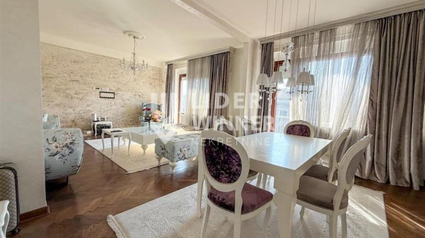 Salonskog je tipa, sa visinom plafonom preko 3m, odaje utisak, ovako sređen, bezvremenske elegancije i otmenosti.
