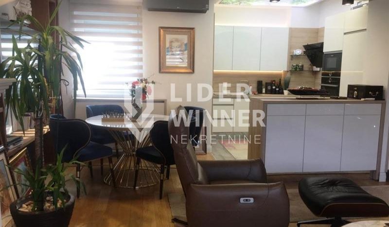 Izuzetno luksuzno opremljen stan na Vračaru. Stan se nalazi u kvalitetnoj odlično održavanoj novoj granji. Lokacijski odličan pristup ka svim delovima grada, važnih saobraćajnicama i gradskom prevozu. Stan se prodaje kompletno namešten i opremljen savremenom tehnikom i rasvetom. Uz stan postoji mogućnost kupovine garažnog mesta površine 17m2 po ceni od 28000e. Prostorije; dnevni boravak, kuhinja i trpezarija, 2 spavaće sobe, garderober i cipelarnik, hodnik, kupatilo, terasa.
