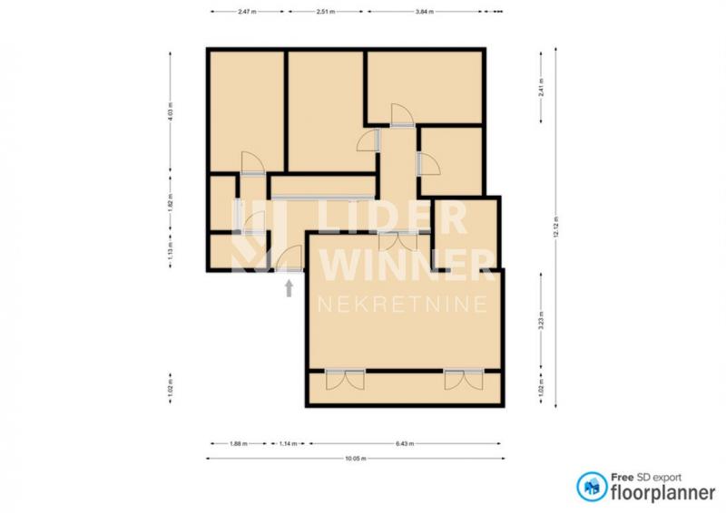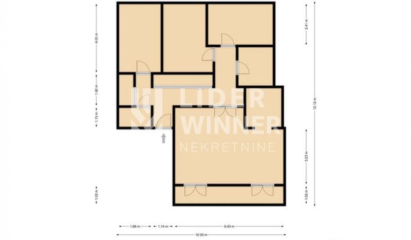 hodnik, dnenva soba, kuhinja, trpezarija, 3 spavaće sobe, kupatilo+toalet, ostava, lođa agencijska provizija 2%