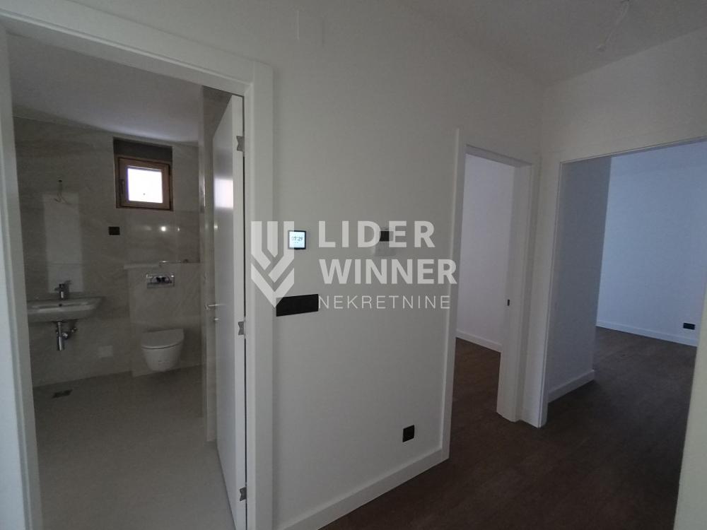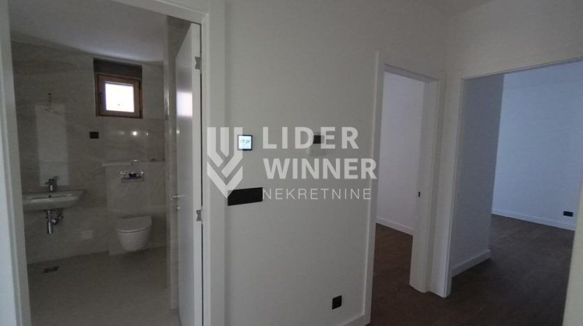 Čine ga ulazni hodnik, ostava-garderober, toalet , prostran dnevni boravak sa kuhinjom i trpezarijom sa izlazom na prelepu terasu. Odvojen spavaći blok sadtoji se iz tri spavaće sobe od kojih je jedna master i ima izlaz na terasu.