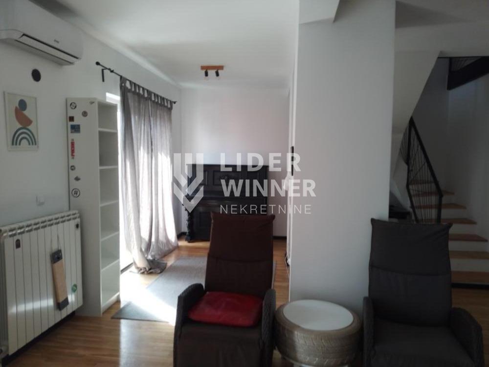 Kompletno opremljen 5.0, duplex na odličnoj lokaciji. Donji nivo- dnevna soba, kuhinja, kupatilo, 2 spavaće sobe, terasa. Gornji nivo- dve spavaće sobe. agencijska provizija 50%