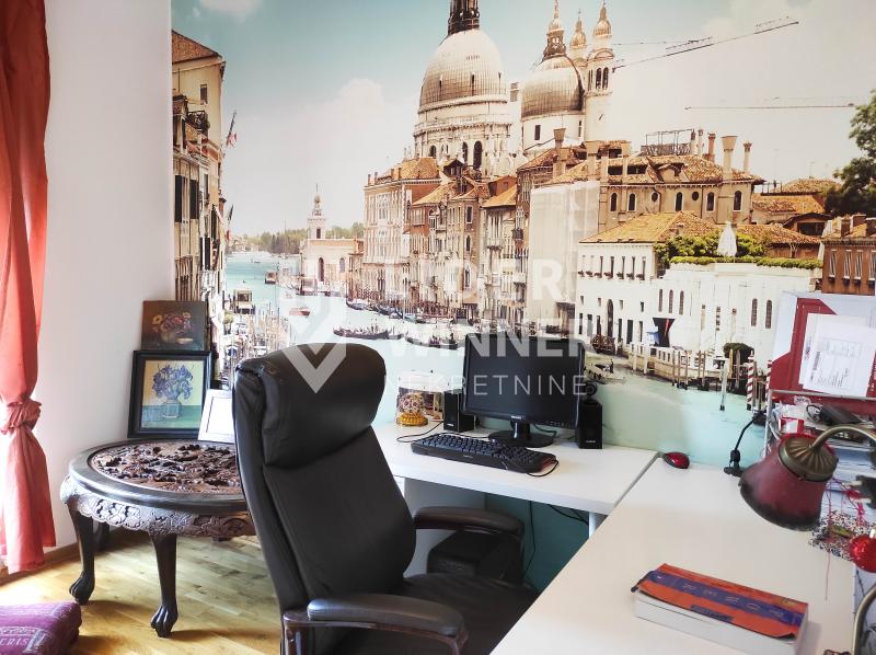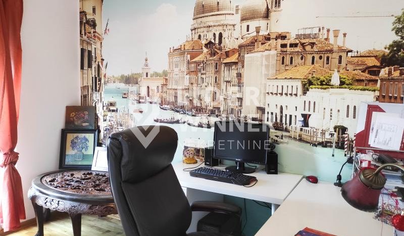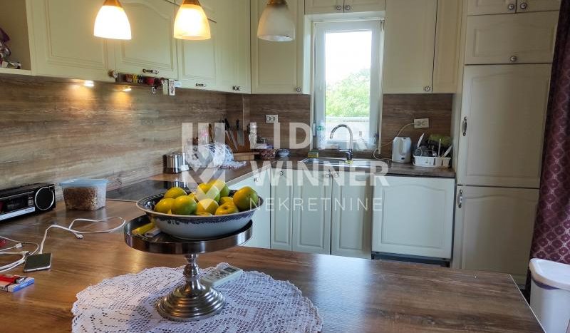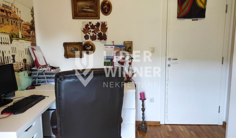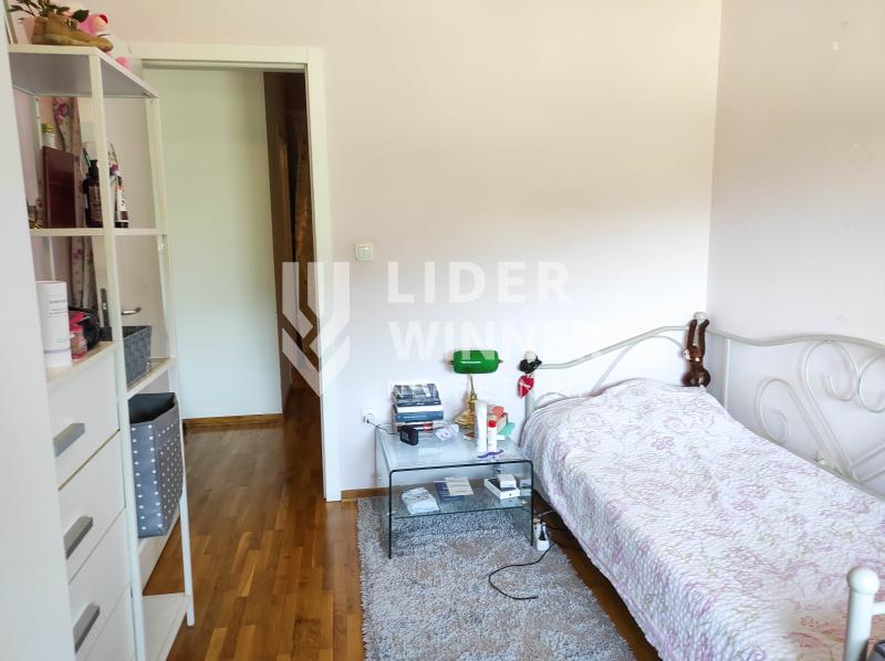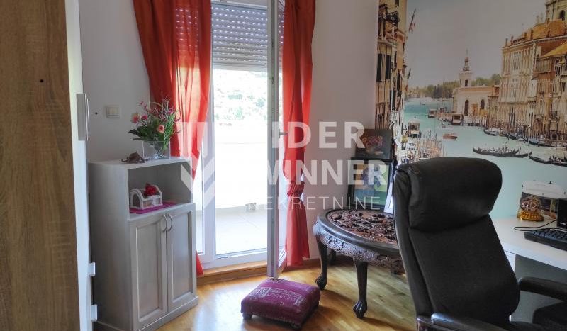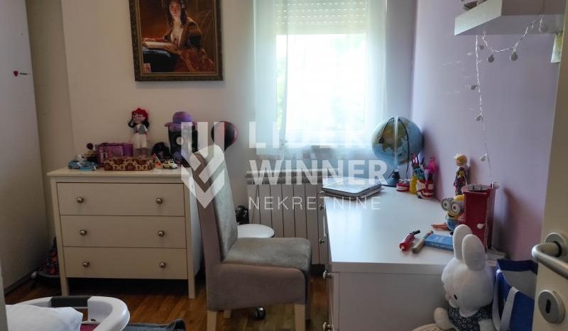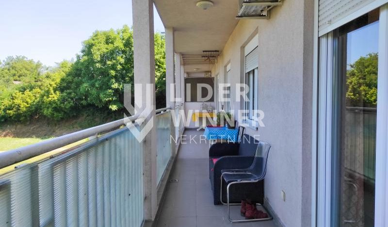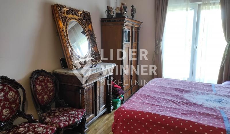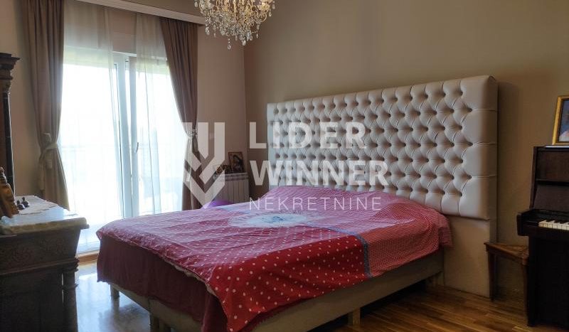 Satoji se iz 4 spavaće sobe ,dva kupatila,kuhinjom sa trpezarijom ,dnevnim boravkom i prostranom terasom koja gleda na šumu i park ,igralište koji je sredjen samo za stanare zgrade.U parku postoji namešten roštilj,klupe…Grejanje je sa kalorimetrom tako da se plaća po potrošnji. agencijska provizija 50%