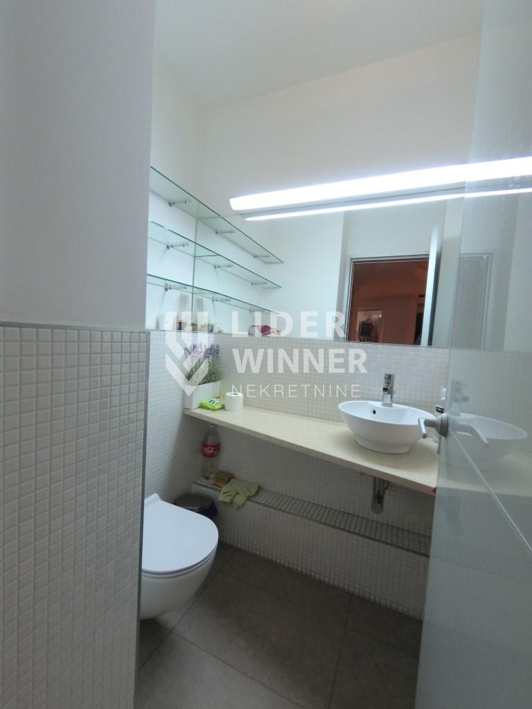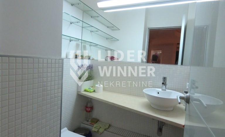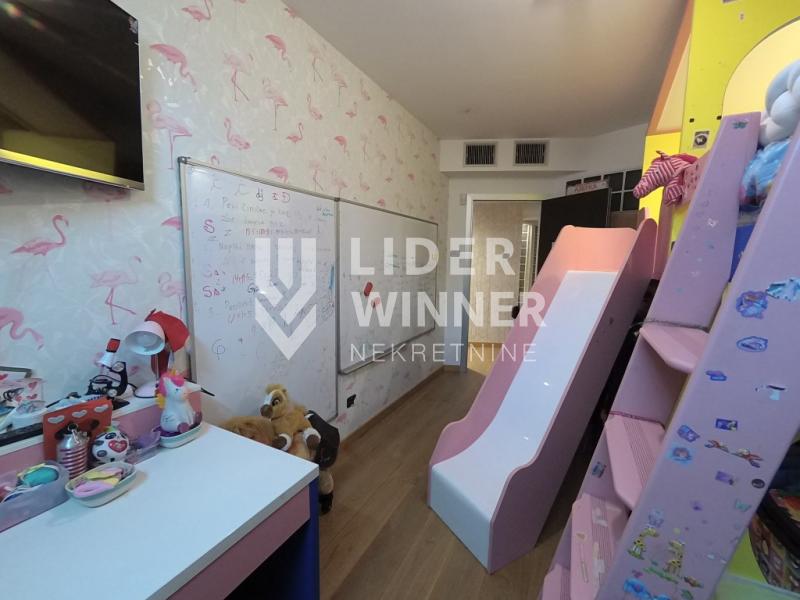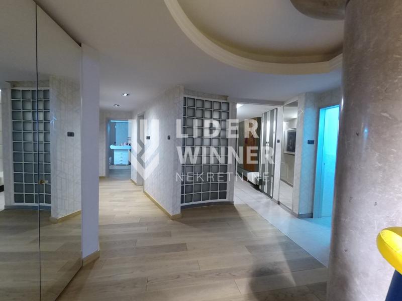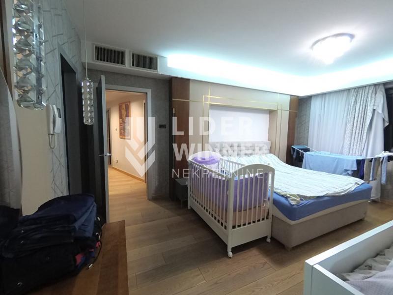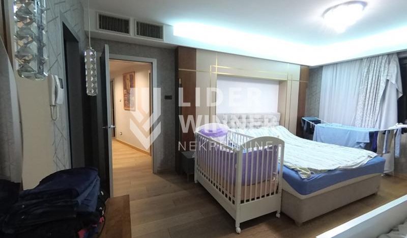 Dve spavaće sobe dele drugo kupatilo. Dvostrano orjentisan ,svetao sa aluminijumskom stolarijom,podom širokih dimenzija i vrhunskom keramikom.Centrana klima skrivena u spuštenom plafonu. Prostran,prijatan a ušuškan u luksuzni ambijent. Kako ima dva ulaza moguća je podela na dve stambene jedinice. Zgrada je sa strogim održavanjem. Mogućnost kupovine garaže sa dva garažna mesta. Pored video nadzora zgrade i stana postoji fizičko obezbedjenje za ulaz u garaže. Prodaje se delimično namešten. Moguća je kupovina na kredit. agencijska provizija 2%