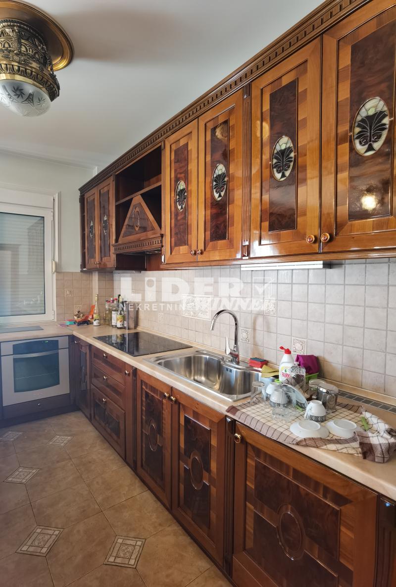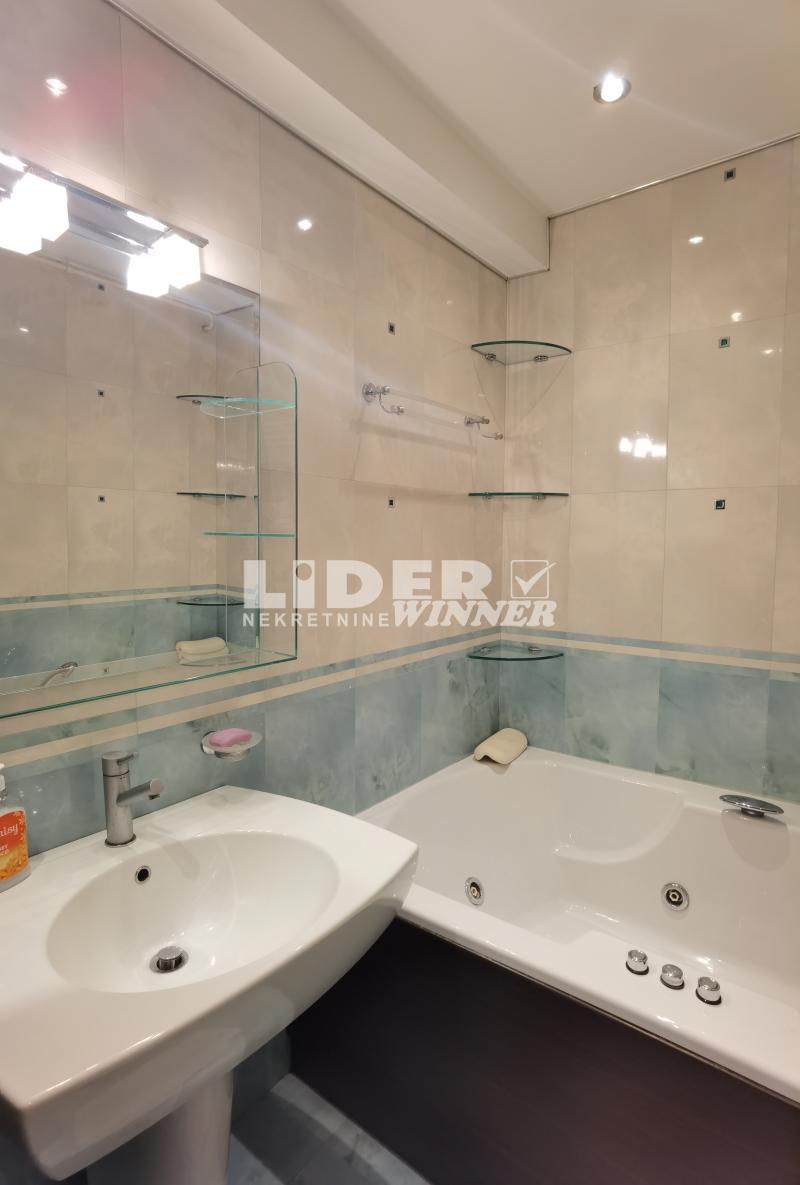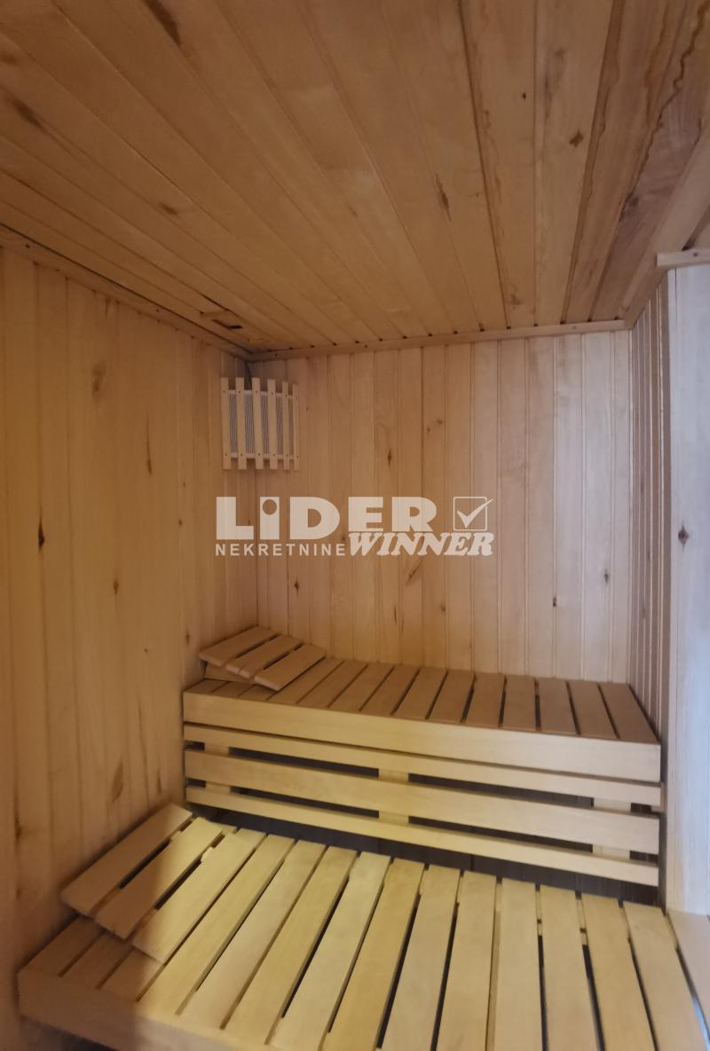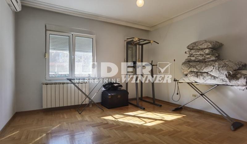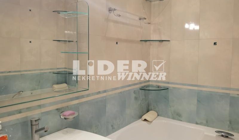 Na Dedinju kod Belog dvora nalazi se ovaj lux stan četvorosoban po strukturi. Kompletno namešten posebnim komadima stilskog nameštaja , umetničkih slika. Odlično organizovan sastoji se iz antrea , gostinjskog toaleta , dnevnog boravka, trpezarije, kuhinje, tri spavaće sobe, kupatilom a poseban deo čini sauna sa tuš kabinom kao mestom za relaksaciju i odmor. Stanu pripadaju garazno mesto, parking mesto i ostava. agencijska provizija 50%