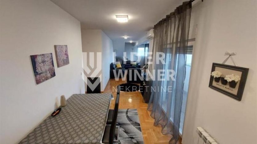 urednoj zgradi, novije gradnje iz 2012. godine sa mogućnošću za ugradnju lifta. Dvostrano orijentisan, u jednom nivou sa malom galerijom na kojoj je smeštena treća spavaća soba. Odvojen spavaći blok, 2 m.č., 2 terase, hrastov parket. Mogućnost deobe na 2 stambene jedinice. Prodaje se sa ili bez nameštaja, sa ili bez garaže ( nije klackalica ). Niski mesečni troškovi. PROSTORIJE: ulaz, dnevno-trpezarijsko-kuhinjski boravak, hodnik, kupatilo, toalet, 3 spavaće sobe, lođa, terasa. agencijska provizija 2%