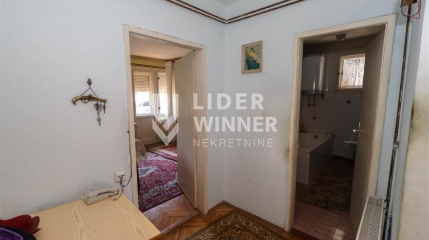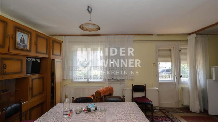 Vertikala kuće sa dva odvojena stana. Jedan u prizemlju, drugi na prvom spratu, iznad je još jedan sprat. Iza kuće ima 0.5ari placa. Garaža. Potrebna su ulaganja, u blizini prevoza glavne ulice, marketa. Može kredit.