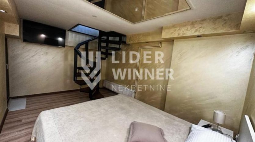 Jedna spavaca soba je na prvom nivou, druga u nivou ispod. Donji prostor sadrži ogledalo na plafonu iznad kreveta, što ovom apartmanu daje specifičan izgled prostranosti. U donji nivo se silazi polukuržnim stepeništem.