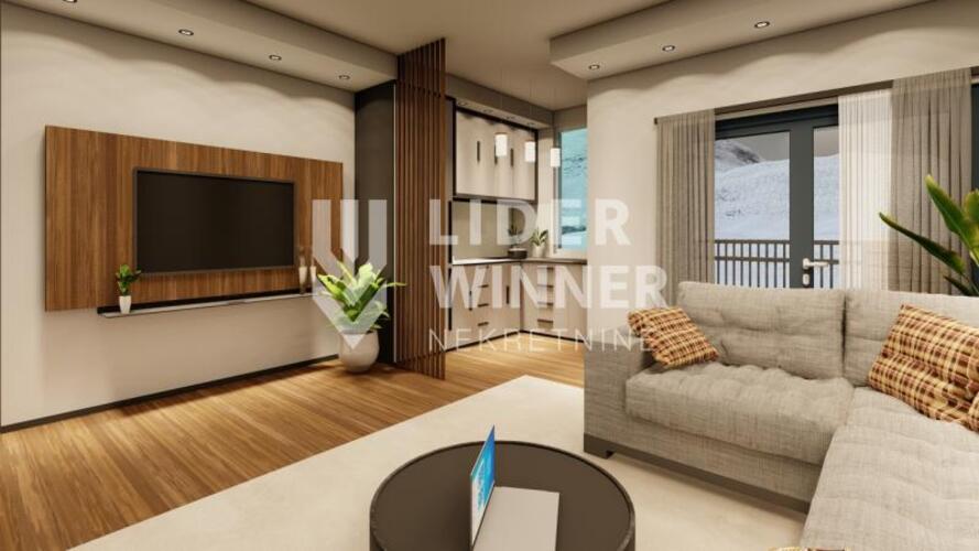 Pored najkvalitetnije konstrukcije,termoizolacija za koju imamo specifikacije sami apartmani imaju pvc stolariju vodećeg brenda ,,Veka SoftLine“ sa ispunom od termo stakla,osmokomorna,plastificirana u antracit sivu boju,untrašnja stolarija je drvena,mdf u beloj boji.Keramika španskog proizvođača,grohe sanitarija…