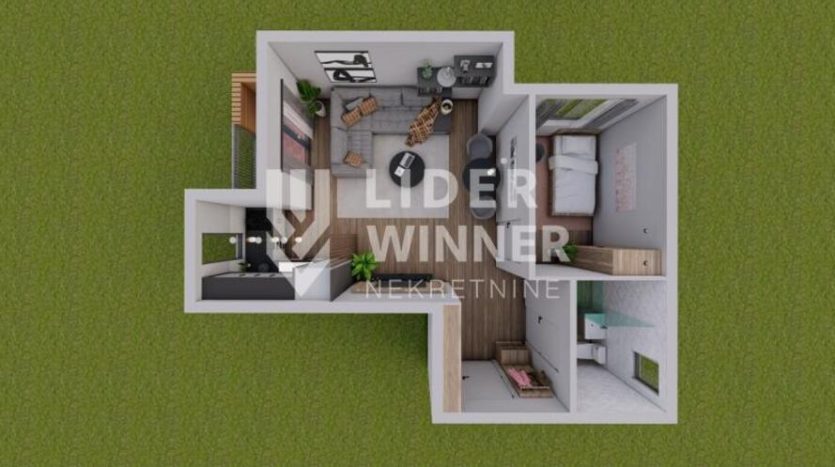 Sastoji se iz hodnika,kupatila,kuhinje,dnevne sobe sa trpezarijom,spavaće s.,terase. Bez provizije za kupca